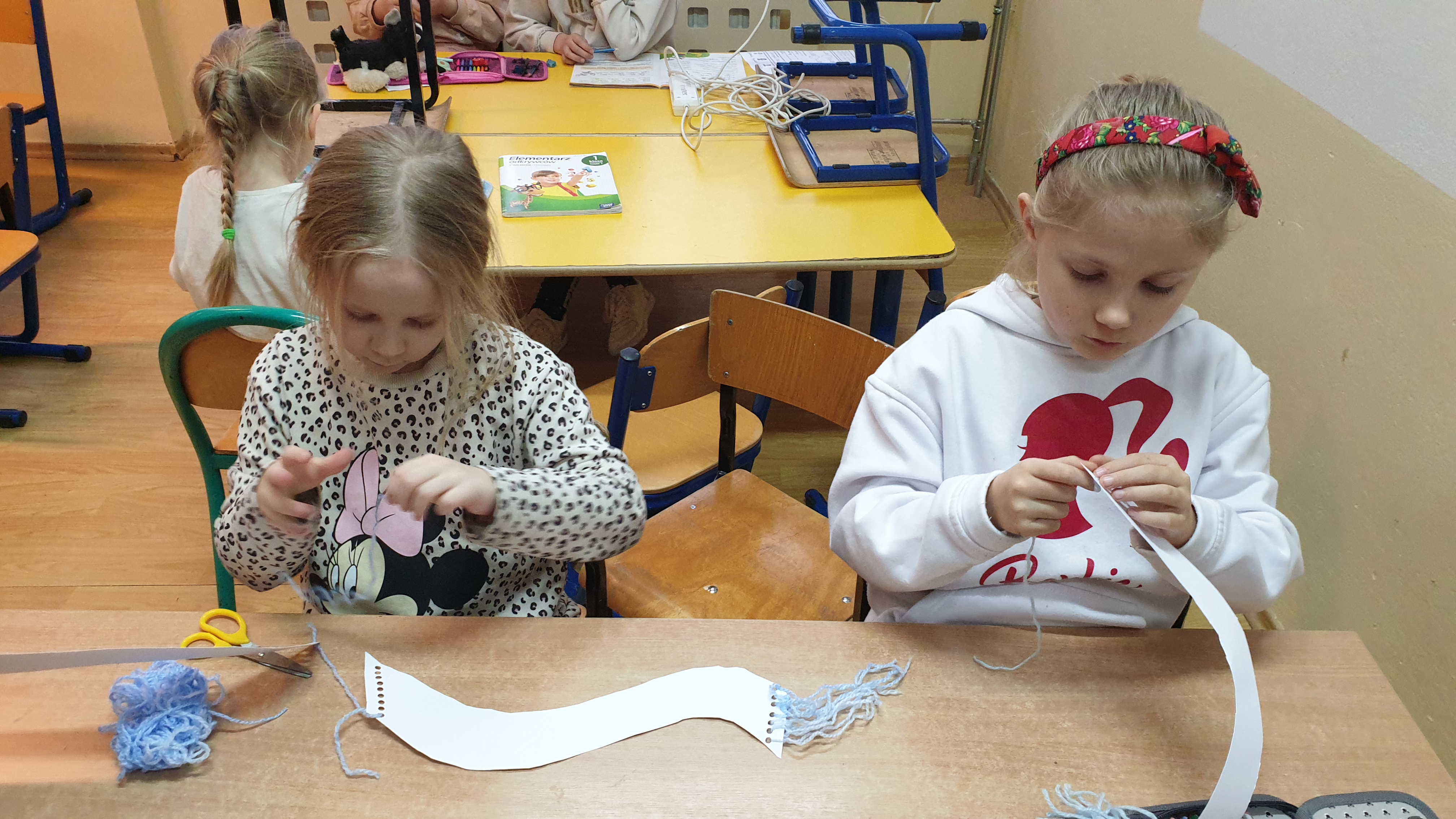 Wypożyczyłyśmy też druty i wełnę na okres ferii. Liczymy, że wrócą do nas szaliki, czapki oraz kwadraty do koców😀 Miłego dziergania😉